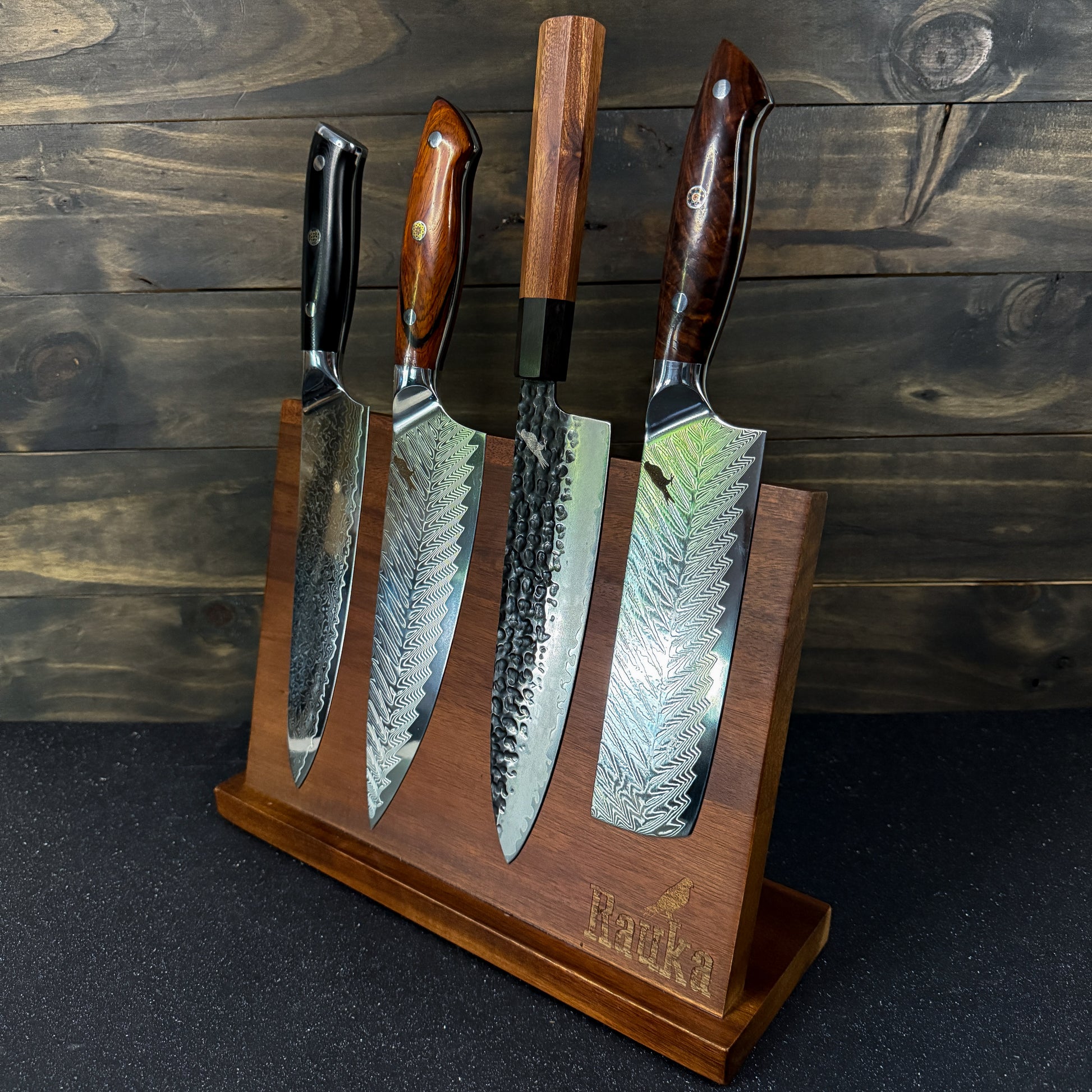 El Bloque Magnético de Madera Carbonizada Rauka ofrece una solución práctica y sofisticada para mantener tus cuchillos organizados, seguros y siempre listos para usar. Su acabado en madera carbonizada le otorga un estilo único y elegante, mientras que los imanes de alta potencia aseguran una sujeción firme sin dañar el filo de las hojas.