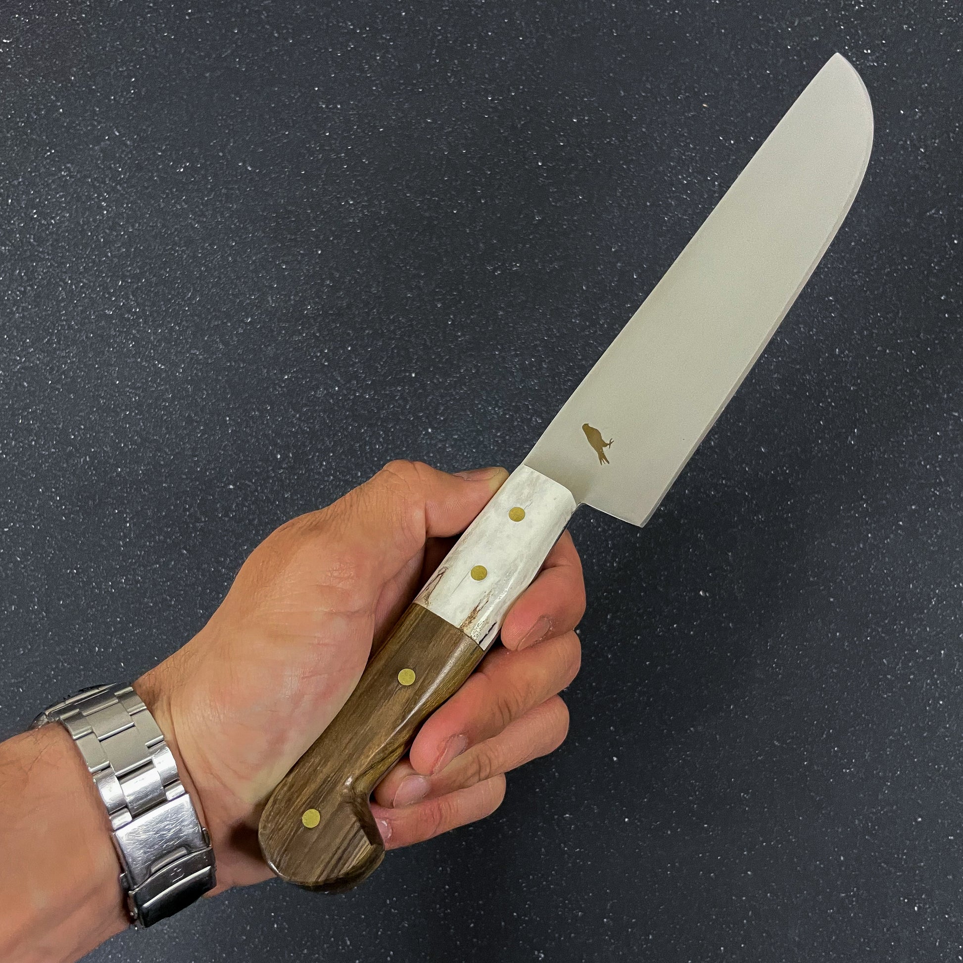 Si buscas comodidad y simpleza para tus cortes en la cocina, nuestro Cuchillo Artesanal “Martín Pescador” es la solución perfecta. Un cuchillo de 180 gramos y una hoja de 20cm. que otorgan una mayor facilidad de uso en diversas tareas. Además, su espesor de 2mm. le permite realizar cortes finos y precisos.