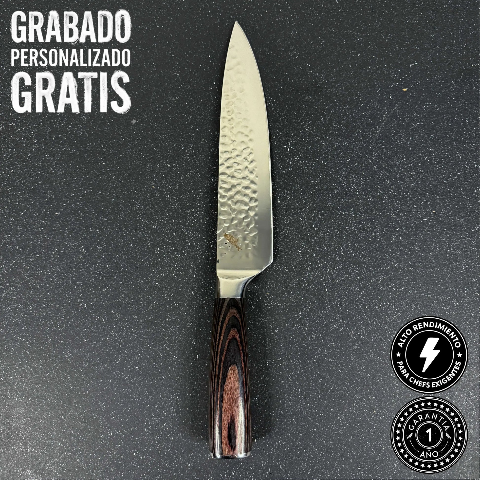 Puedes personalizar la hoja de todos los cuchillos con lo que tu quieras!! Puede ser un nombre, iniciales, una frase o un logo.
