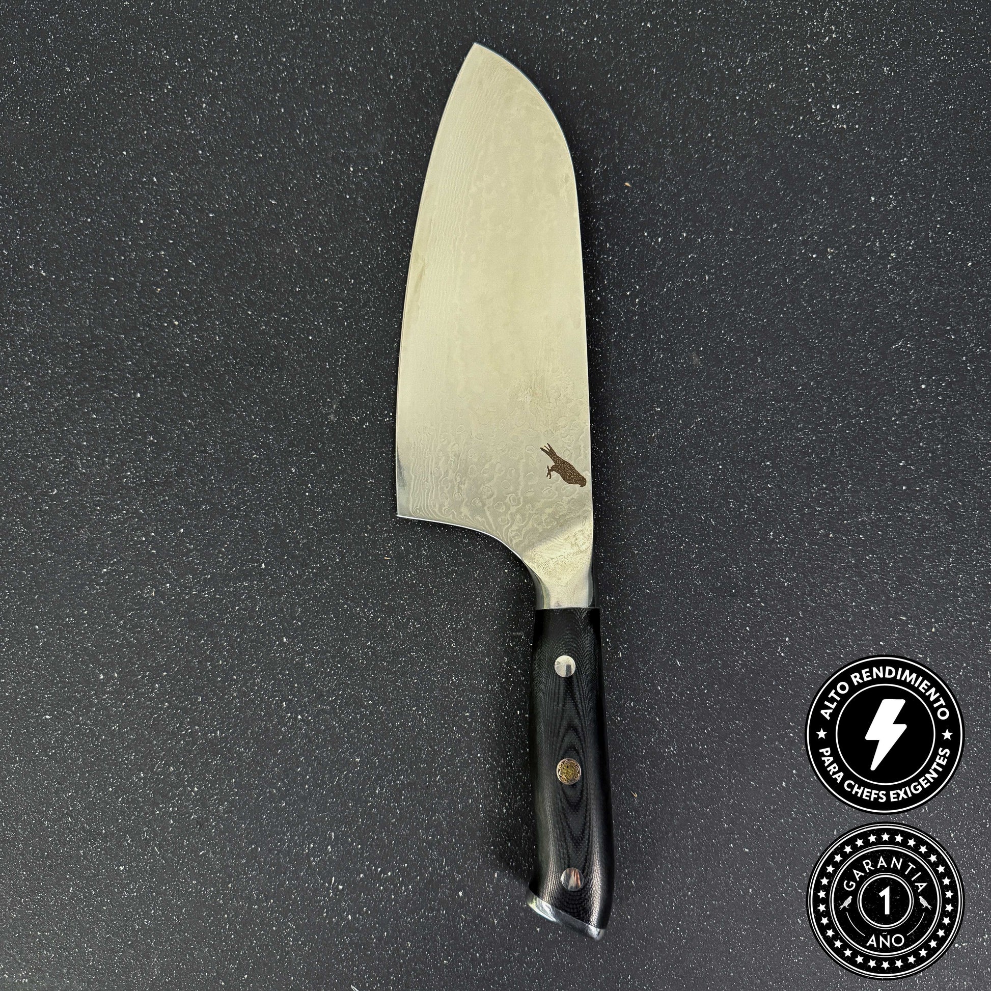 Forjado con 67 capas de acero Damasco AUS-10, ofrece un filo imponente, alta resistencia y un espectacular patrón en la hoja que subraya su exclusividad. Su empuñadura de G10 combina ergonomía, durabilidad y control absoluto, incluso en los cortes más exigentes.