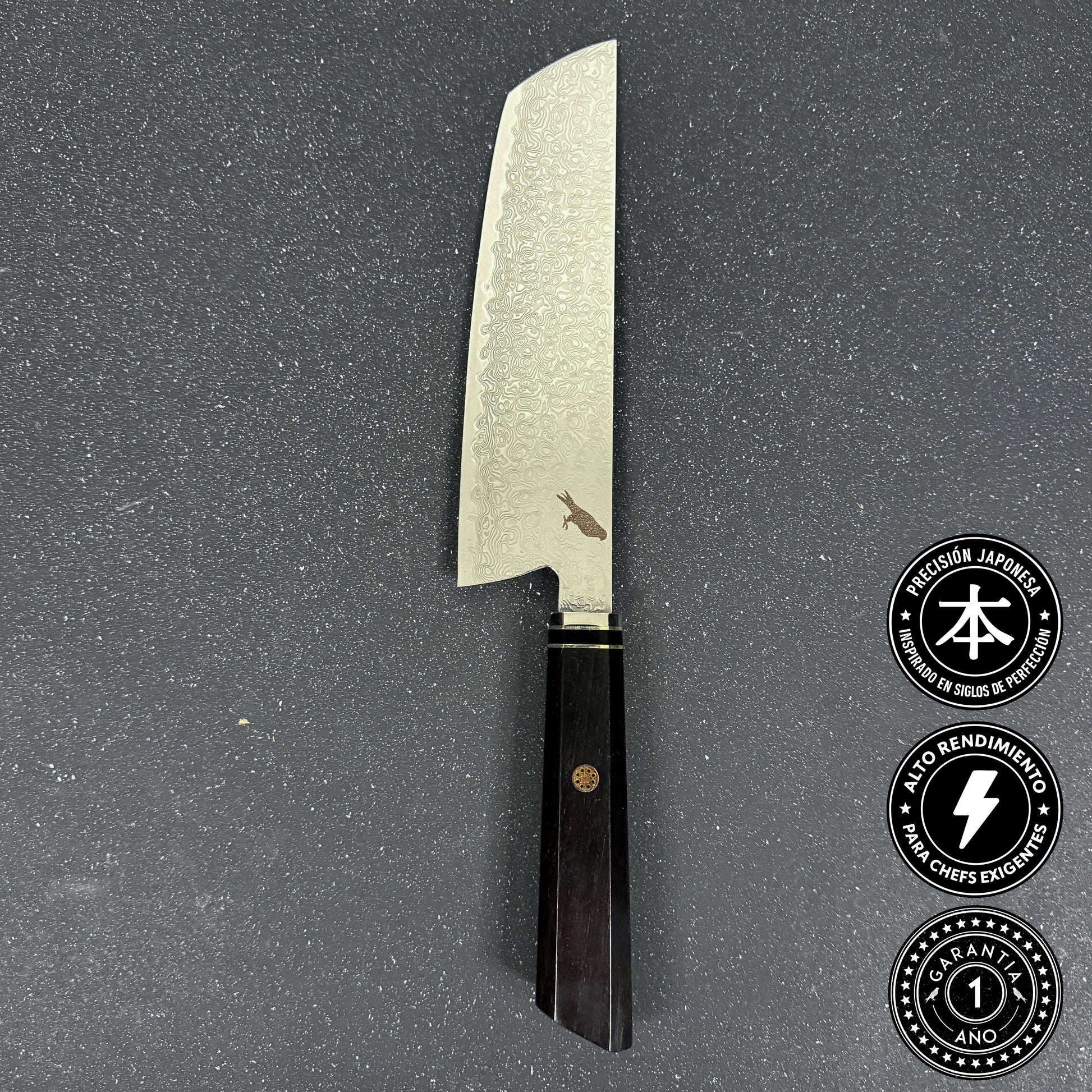 El cuchillo Nakiri “Tora” es la elección perfecta para quienes buscan cortes limpios y precisos en vegetales y hierbas. Diseñado para chefs y aficionados exigentes, destaca en la cocina profesional por su control y elegancia en cada preparación.