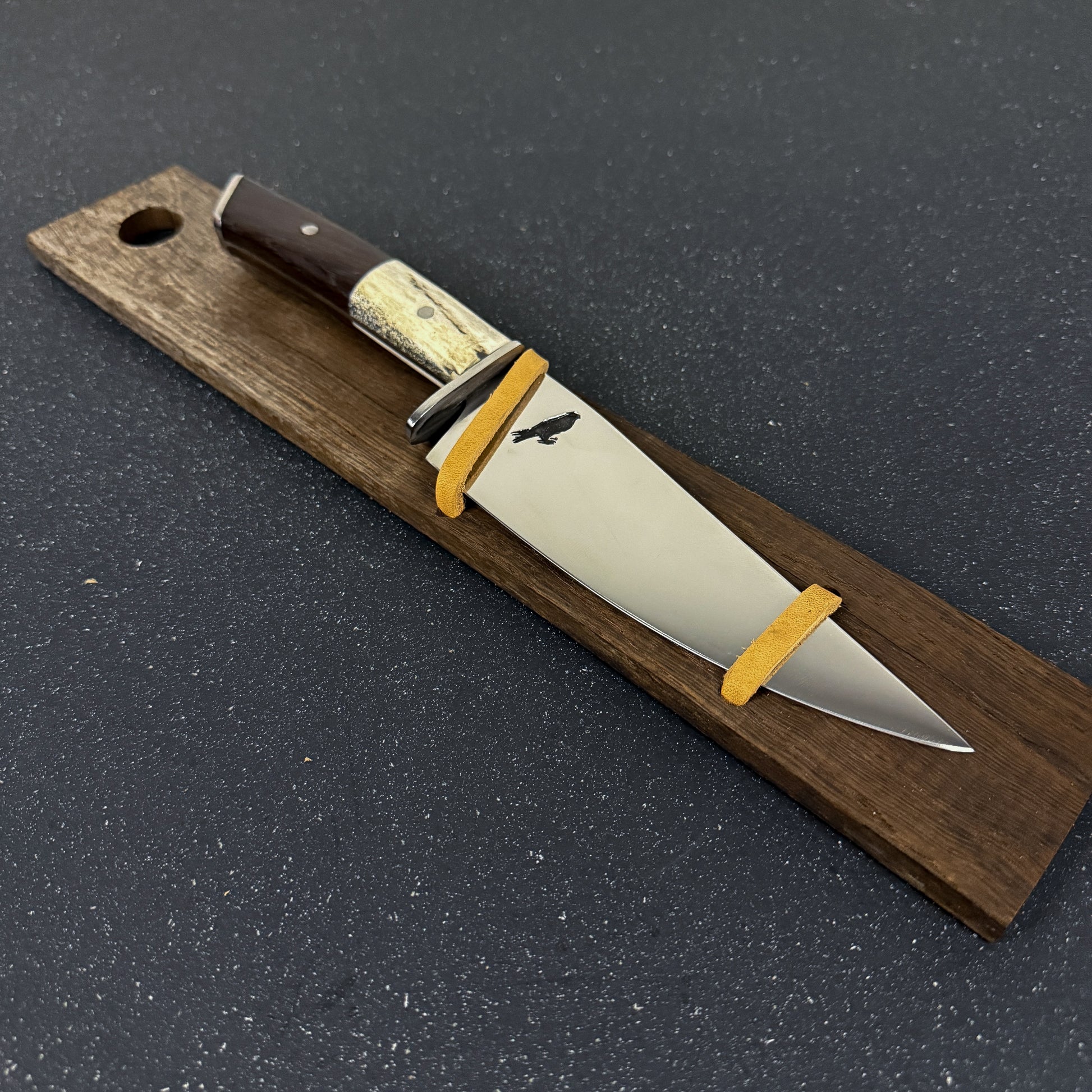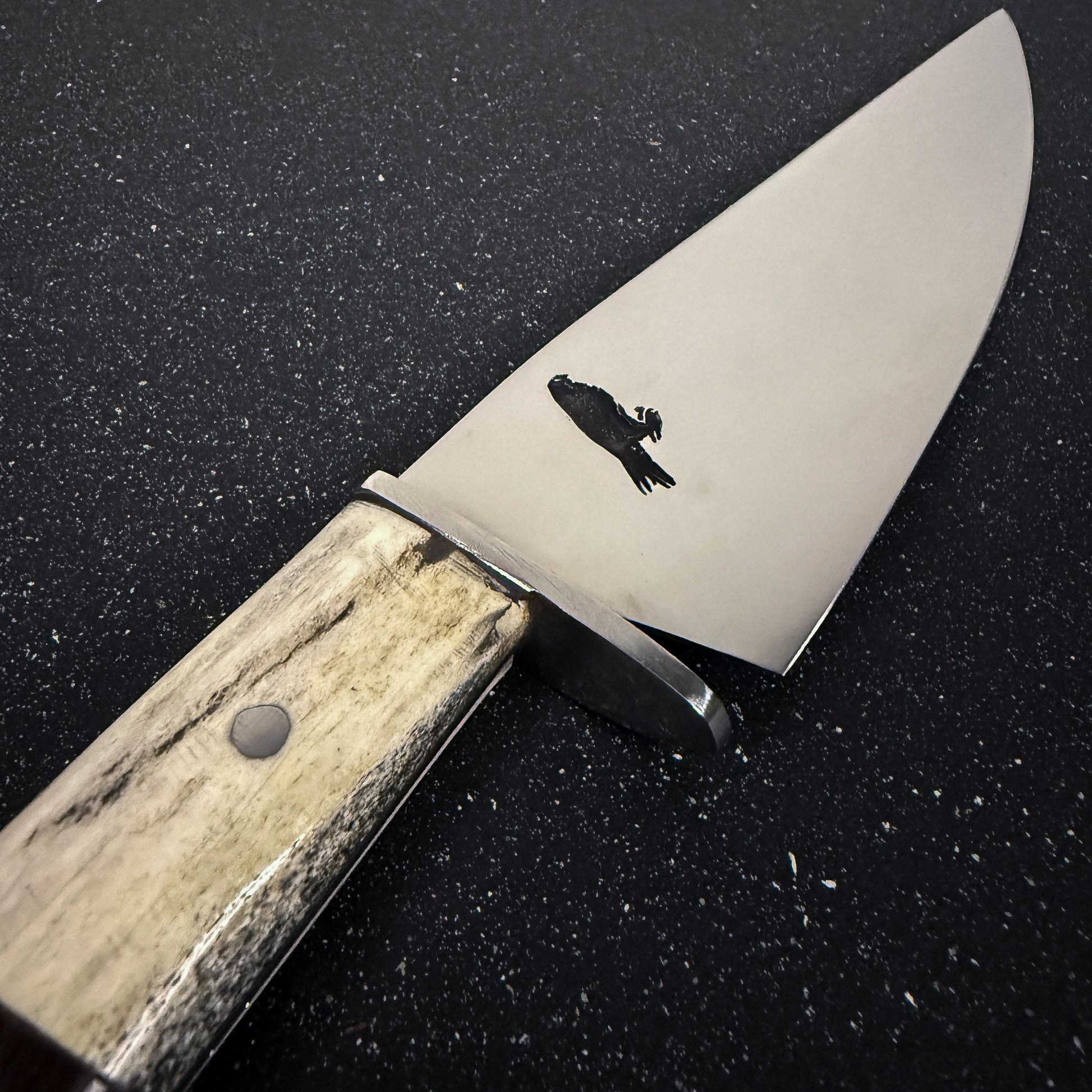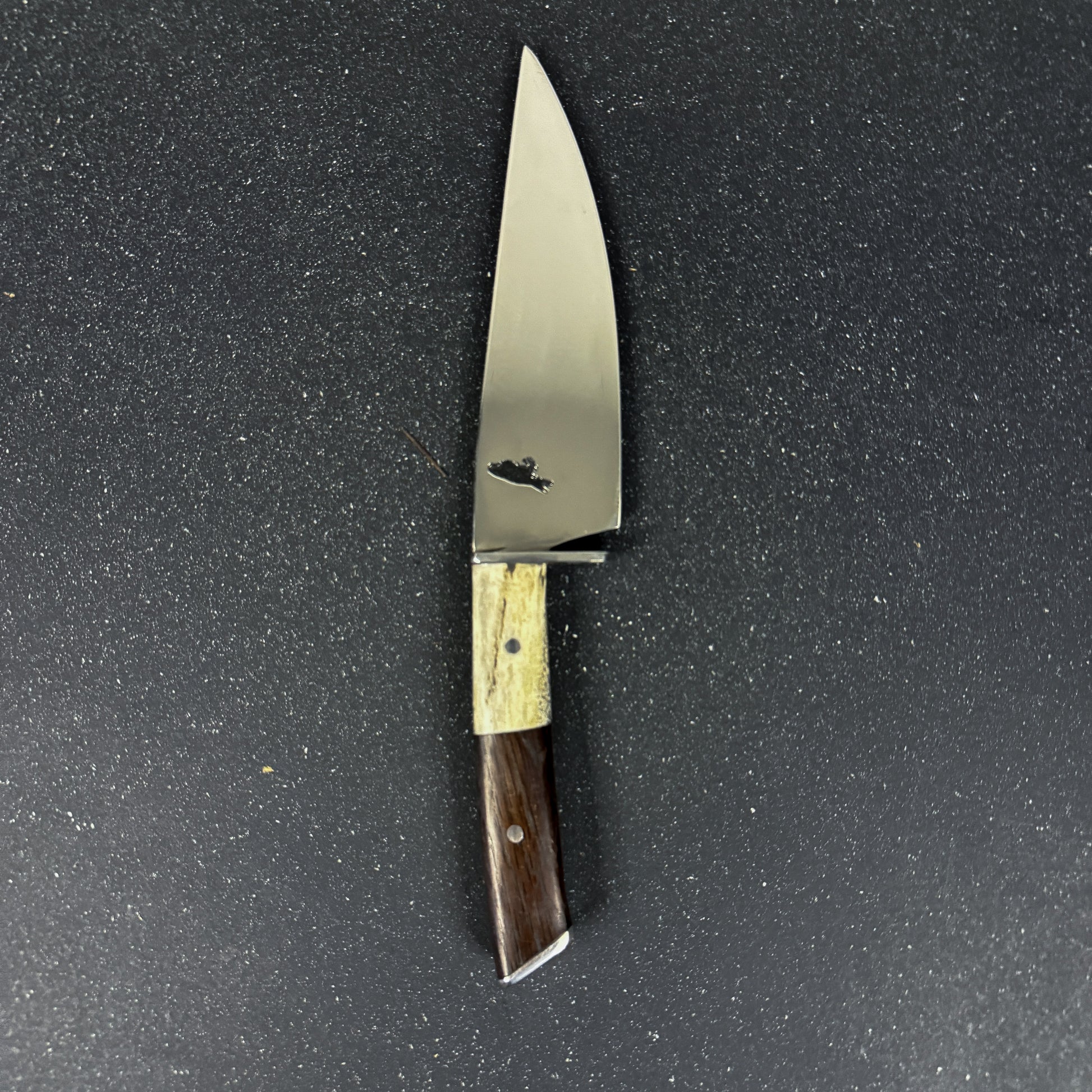 La forja a mano meticulosa de este cuchillo garantiza una calidad excepcional en cada detalle. La empuñadura de asta de ciervo y madera de Roble Francés le ofrece un agarre firme y seguro, brindando un control superior durante el uso. Además, su diseño elegante añade un toque de sofisticación a tu cocina.