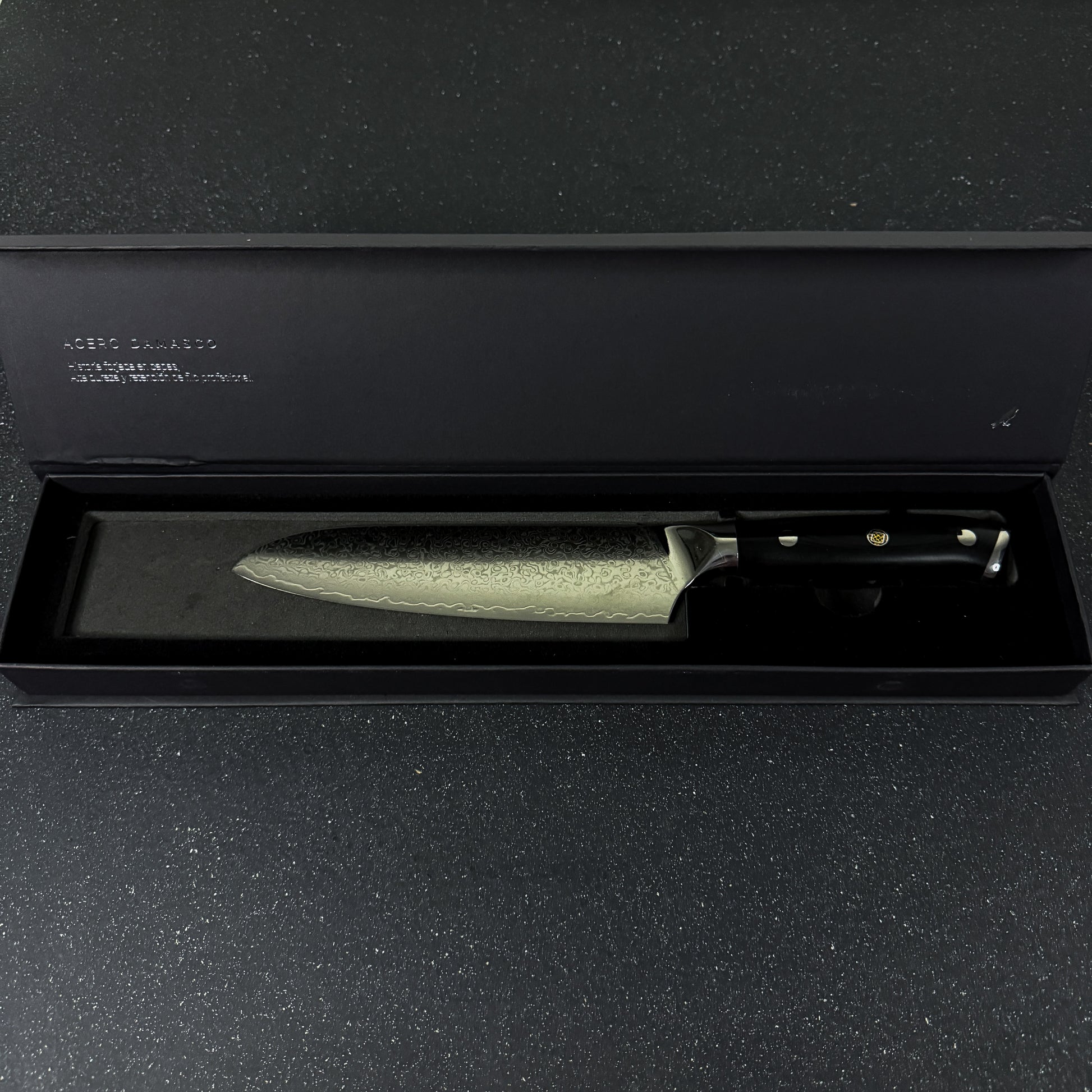 Forjado con 67 capas de acero Damasco AUS-10, su hoja de 17,5 cm ofrece un filo sobresaliente, gran resistencia y un patrón único que refleja su distinción. La empuñadura de G10 proporciona firmeza, durabilidad y ergonomía para un manejo cómodo y seguro.