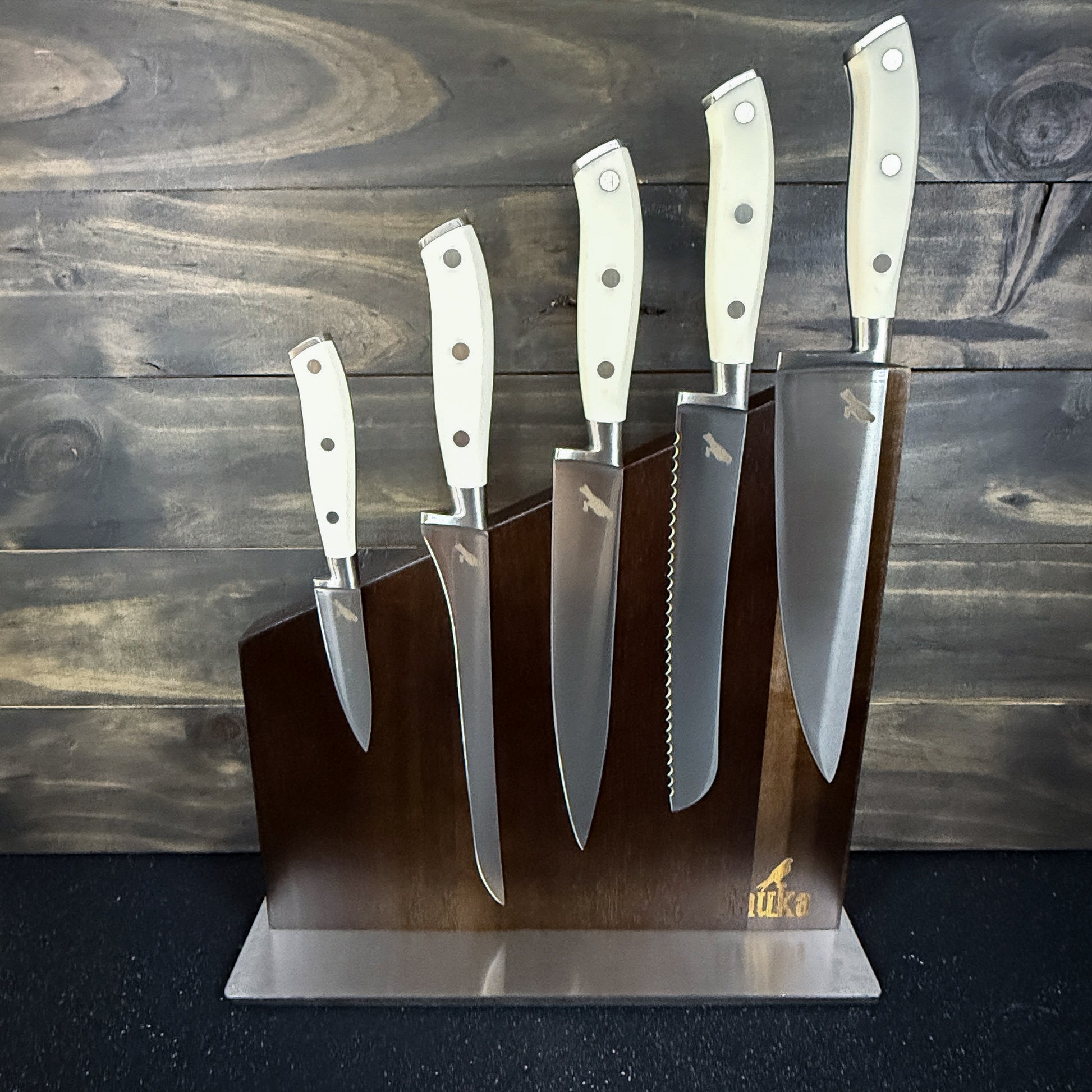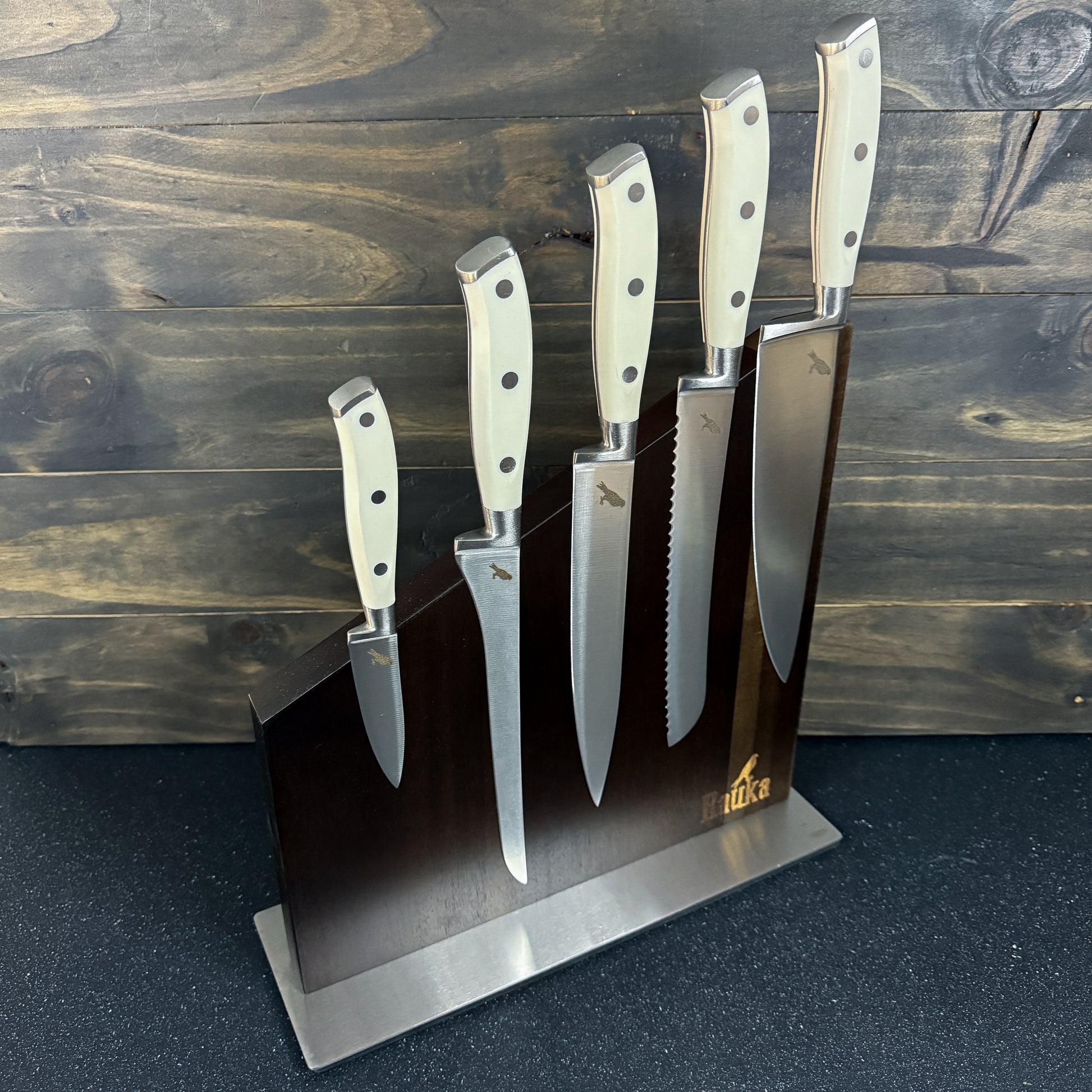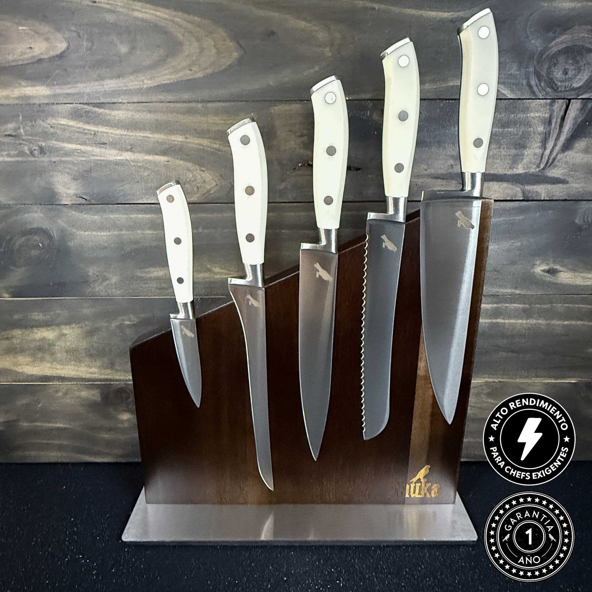 Pack 5 Cuchillos de Cocina + Bloque Magnético "Provincia" / "Leonera" / "Pintor" / "La Paloma" / "Puntilla Blanca"